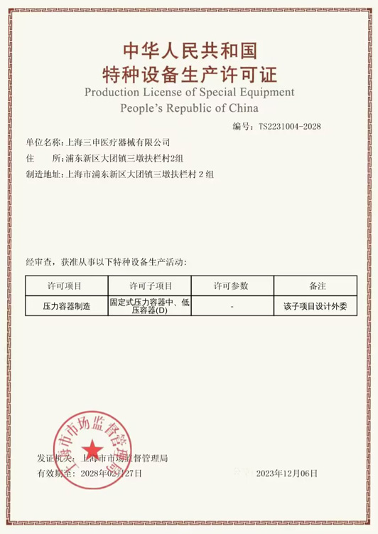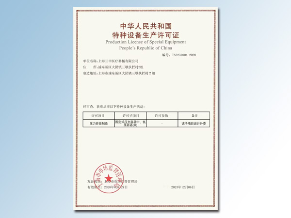 特种设备生产许可证