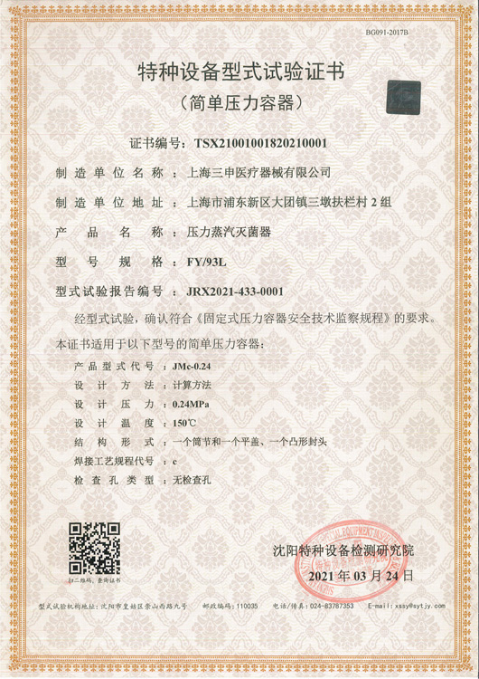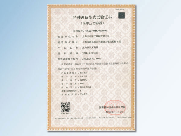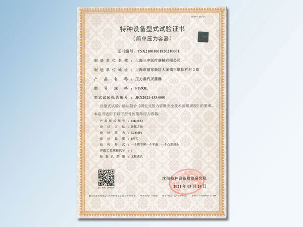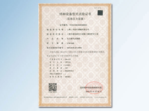 特种设备型式试验证书