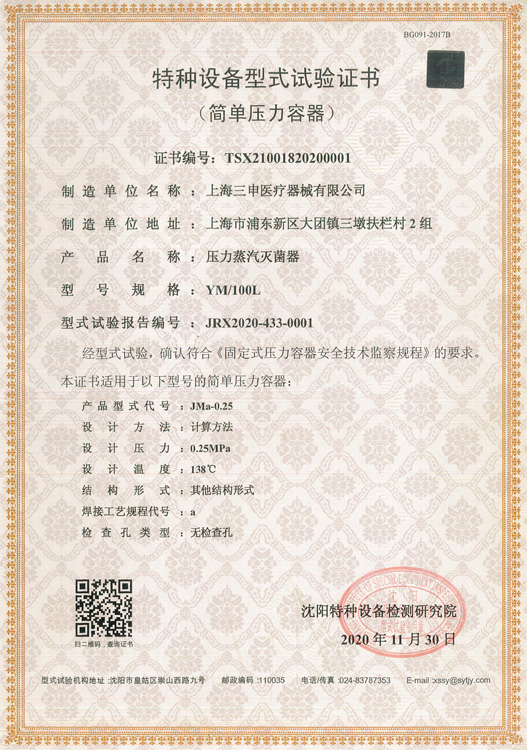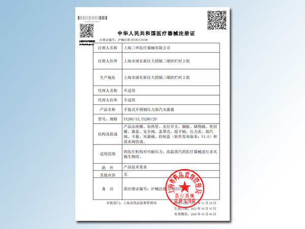 YMLII立式压力蒸汽灭菌器注册证