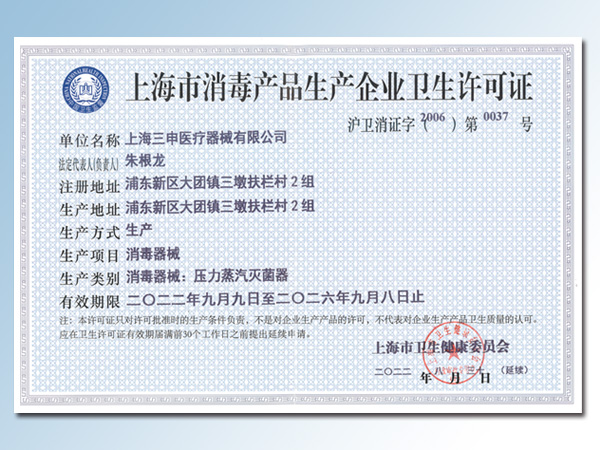 消毒产品卫生许可证